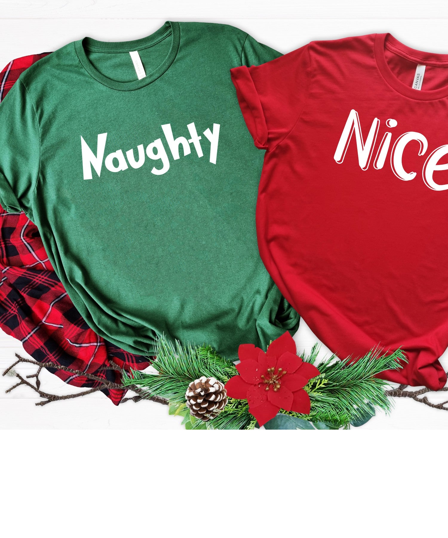 You can choose from red or green t-shirts and Naughty or Nice